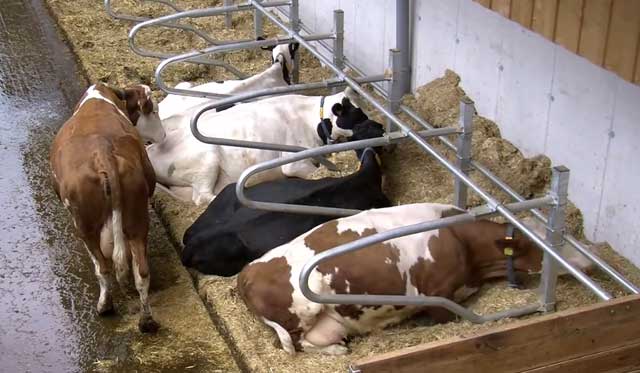 Головні плюси безприв’язного утримання: механізоване годування, порівняно дешеве будівництво приміщень, полегшена прибирання.