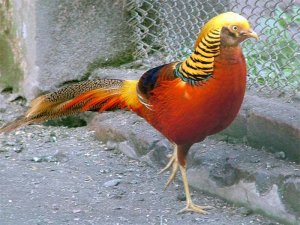 - Золотий фазан. Самець забарвлений в золотисто-жовті відтінки, а голову вінчає золотистий хохол, на комірі розташовані віялоподібні пір’їнки з чорною окантовкою, а надхвістя теж виконано в жовтому кольорі. Оперення самки набагато скромніше, вона має бура оперення.