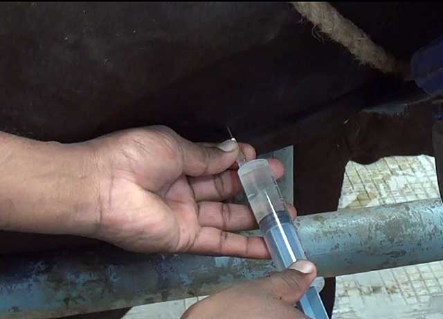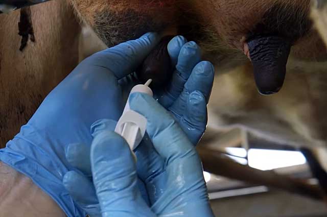 Після того, як ін’єкція зроблена, сосок потрібно на пару хвилин притиснути пальцями і зробити масаж, щоб ліки рівномірно поширилося по вимені.