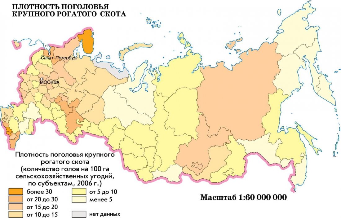 За загальною статистикою можна помітити, що ВРХ в Росії має велику чисельність і практично рівномірно розподілений по всіх регіонах нашої неосяжної Батьківщини.
