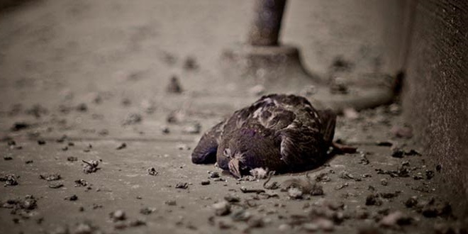 На 5 день голова голуба з-за ураження нервової системи, повертається в неприродне положення, як це показано на фото. Крім того, сильно уражаються внутрішні органи, спостерігаються масивні внутрішні кровотечі.