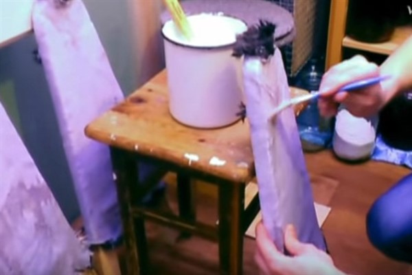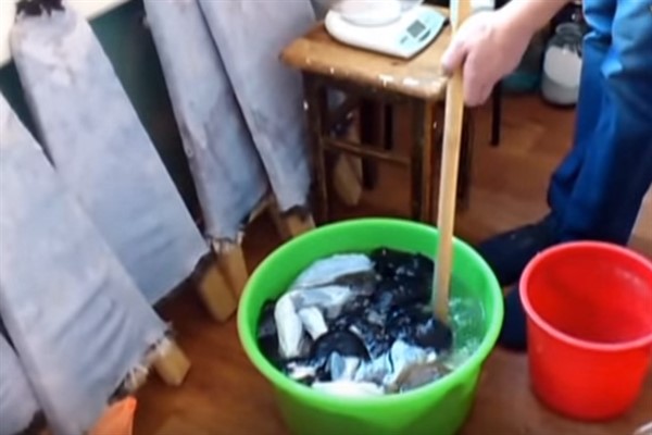 Ось так в домашніх умовах готується рідина для вимочування. Цей процес триває 2-4 доби, після чого шкури очищають від міздрі.
