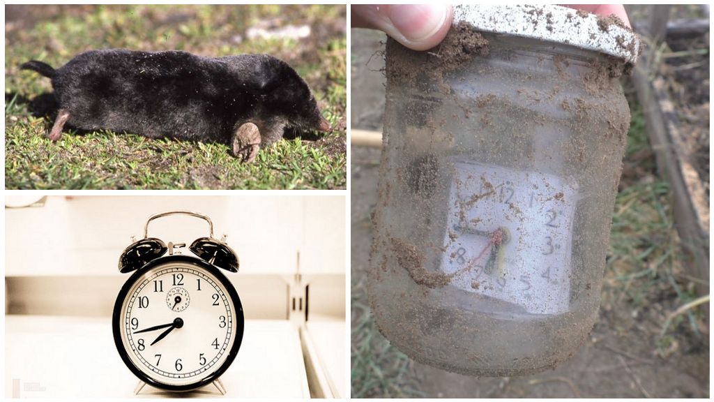 Дуже просто зробити відлякувач кротів із звичайних дешевих будильників на батарейках. На будильників виставляють різний час дзвінка і поміщають години в банки з закручуються кришками. Кришки банки герметизують і закопують в різних місцях городу. Кроти не виносять постійно лунають з-під землі звуків будильника і залишають ділянку.