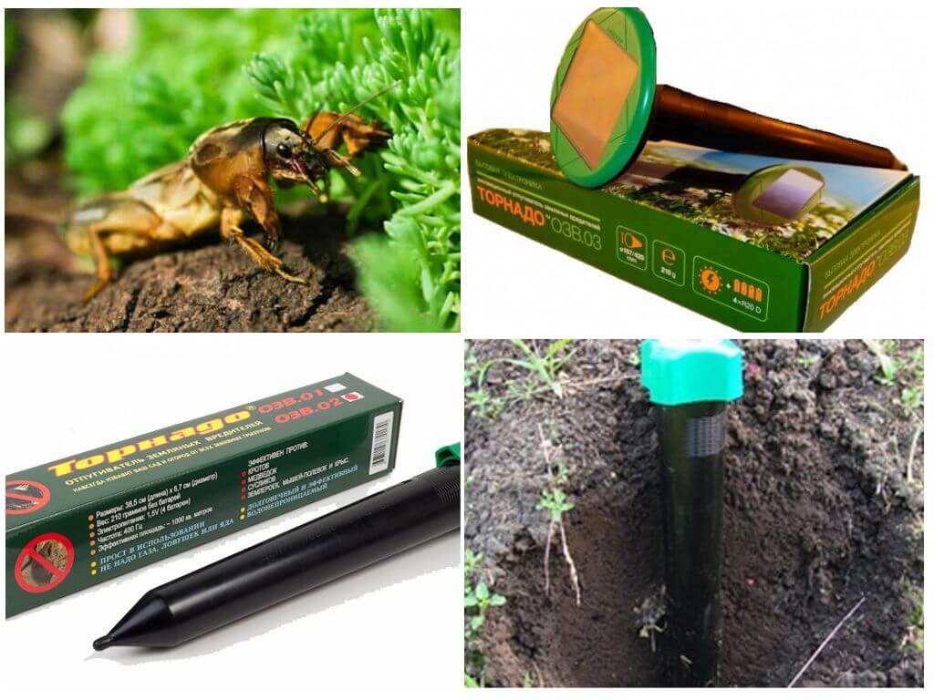 - Електронні відлякувачі медведок. Менш популярні, оскільки використовувати на відкритому ділянці проблематично. Необхідно забезпечити додаткові умови безпечної роботи. Принцип роботи нічим не відрізняється. Є кілька режимів, щоб шкідники не змогли пристосуватися до вібрацій.
