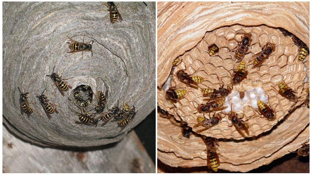 Як відрізнити гніздо шершня від оси, існує декілька ознак. І ті, і інші комахи будують гнізда з допомогою спеціального секрету. Пережовують деревину, клейкою масою формують стільники. Через деякий час маса твердне, стає схожою на папір.
