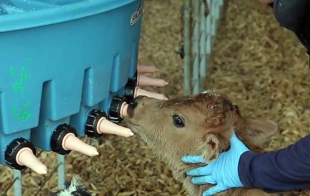 Якщо новонароджене теля слабкий і не може самостійно пити молоко, його потрібно поїти з допомогою спеціальної соски. Це дозволить проконтролювати кількість вживаної рідини. Але процедуру потрібно проводити обережно, щоб пиття не потрапила в легені. Інакше може початися запальний процес. Якщо тварини п’ють занадто швидко, треба робити невеличкі перерви. Інколи вони, навпаки, не можуть осилити всю порцію. У цьому випадку примушувати їх насильно не потрібно.