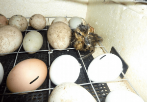 Перші два тижні її зберігають на рівні 38 градусів, яйця два рази в день перевертають.