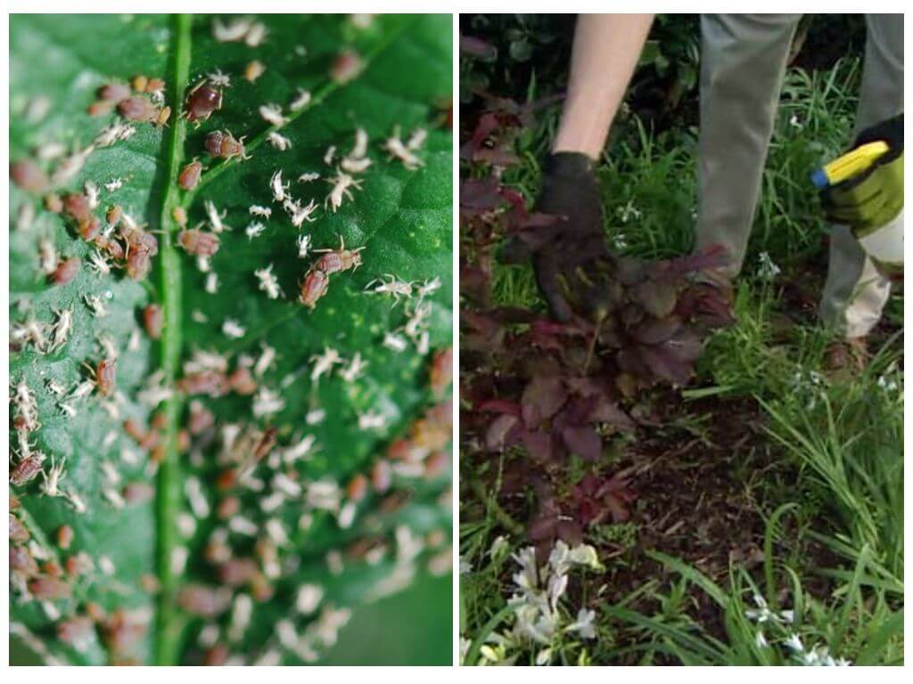 Приготований за будь-яким рецептом розчин заливають у садовий пульверизатор або пляшечку з розпилювачем. Обприскувати слід у напрямку знизу-вгору, оскільки попелиця зосереджується в нижній частині листя.