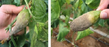 Сіра гниль – захворювання добре відоме багатьом городникам. При коливаннях температури, високої вологості повітря, на плодах і листках з’являється сірий наліт. Через час плід розм’якшується, виступають чорні точки – міцелій гриба. Потрібно усунути причину, що викликала це грибкове захворювання, а саме: