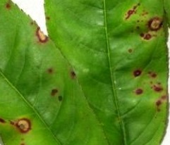 Навесні при вологій і прохолодній погоді інфекція розноситься по ділянці, що призводить до ураження всіх частин плодового дерева. На листках утворюються дрібні буро-коричневі плями, як показано на фото. Поступово вони збільшуються в розмірах, а уражену лист в’яне і опадає. Плями можуть зливатися, вони завжди оточені характерною клястероспоріозу облямівкою.