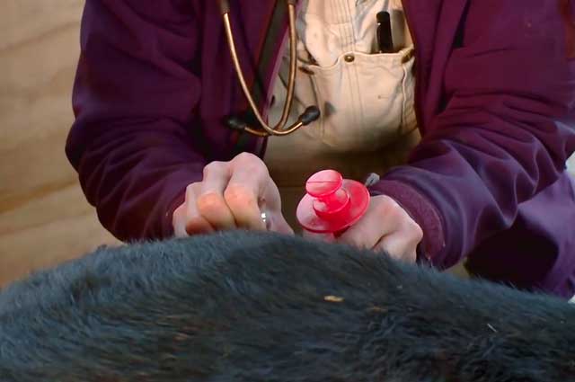 Щоб дати теляті можливість дихати, використовуються гуртка Есмарха і спринцівка з наконечником. Після всіх маніпуляцій новонародженого потрібно промити вологою ганчіркою, а дихальні шляхи прочистити вологим ганчірковим джгутом.