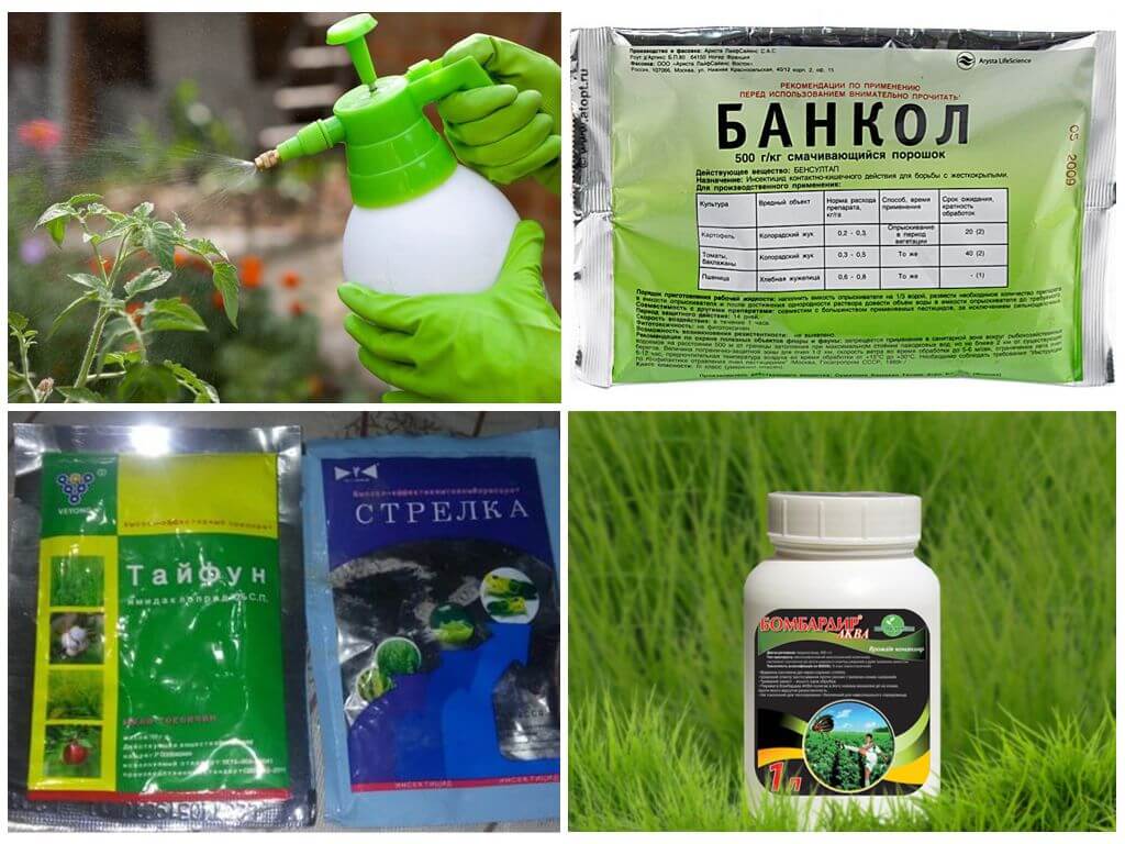 - Банкол – популярний засіб, що допомагає витравити багатьох шкідників на рослинах, отрута діє при попаданні в їх травну систему, викликаючи знерухомлення і загибель протягом 3-х днів після обробки. За інструкцією для одержання розчину 5 г речовини розбавляють 10 л води, цього обсягу має вистачити на обробку 0,5-1 сотки городу.