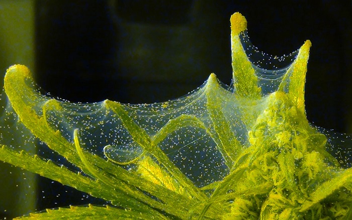 - поступово кліщ обплітає рослина павутиною;