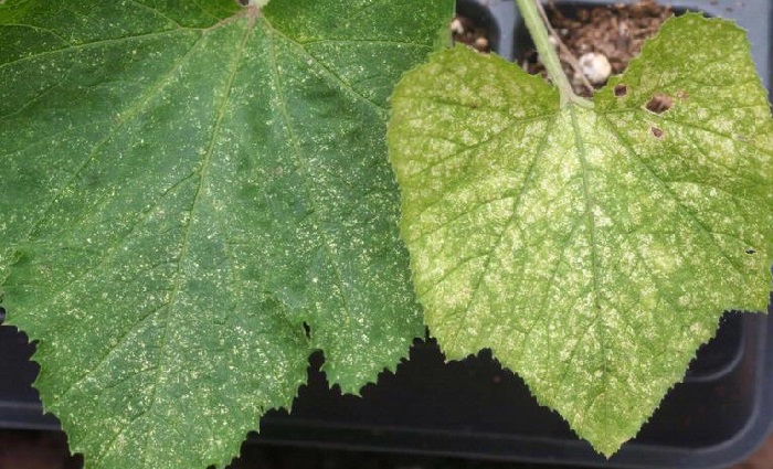 Ознаки зараження огірків павутинним кліщем наступні: