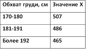 Якщо ж у вас під рукою немає таблиці співвідношення параметрів тіла і маси, то зробити розрахунок ваги можна за допомогою рівняння регресії: Y = 5,3 x-X. В даній формулі маленьке «х» буде змінюватися в залежності від розміру грудної клітки. Точне значення «Х» великого для різних за масивності тварин можна подивитися в таблиці:
