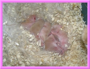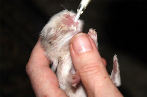 Молоді тварини їдять з 2 до 6 години ранку. Необхідно стежити, щоб їх животики завжди були повними. Якщо мама відмовляється їх годувати, то її потрібно посадити в клітку до діткам, і поспостерігати за нею 15 хвилин. За цей час вона повинна почати годувати малюків. Якщо ситуація не змінилася, то потрібно зайнятися пошуком іншої самки.