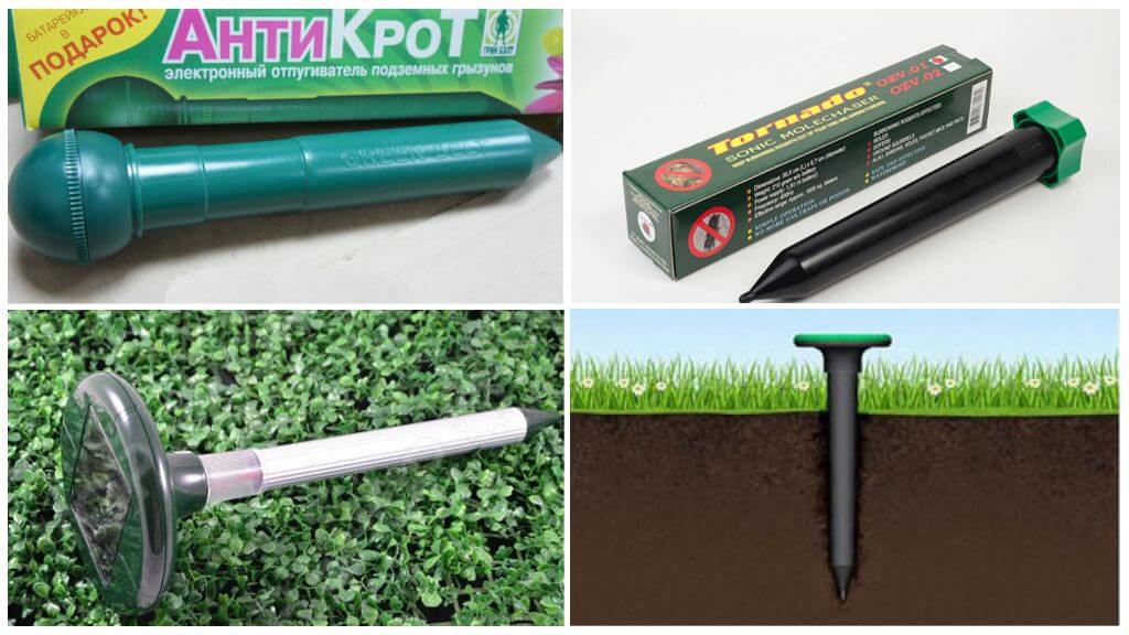 Установка на ділянці акустичних пристроїв Антикрот, Кротогон, ЭкоСнайпер, Сититек та ін., які генерують ультразвукові сигнали, що сповіщають звірків про небезпеку, змусить «підземних гостей» покинути територію городу.
