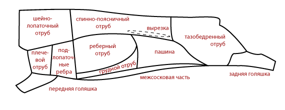 Схема оброблення туші свині
