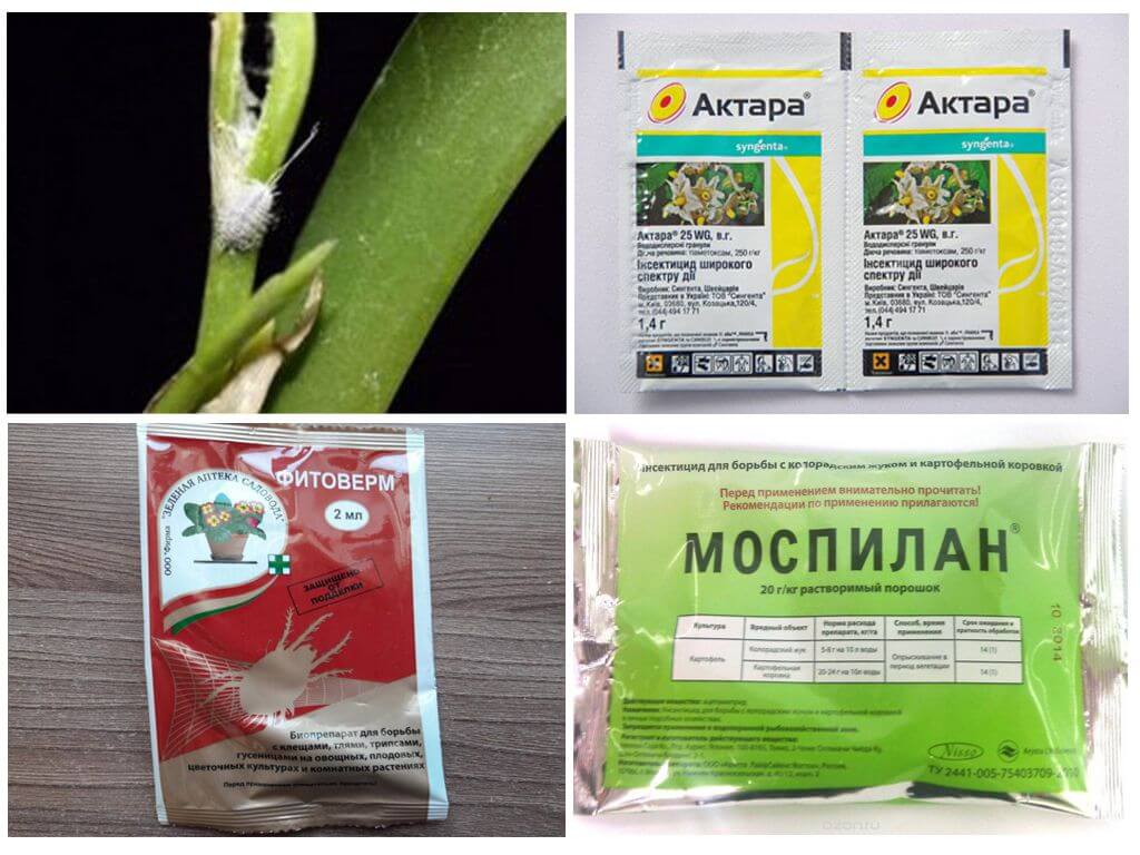 При великому скупченні комах на рослині застосування одного механічного способу недостатньо. Ідеально в такій ситуації використання хімічних засобів, що містять у своєму складі інсектицидні компоненти. Багато господинь задаються питанням, чим обробити орхідею, виявивши на ній, неприємних на вигляд комах. Досвідчені квітникарі виділяють наступні засоби від борошнистого червця: