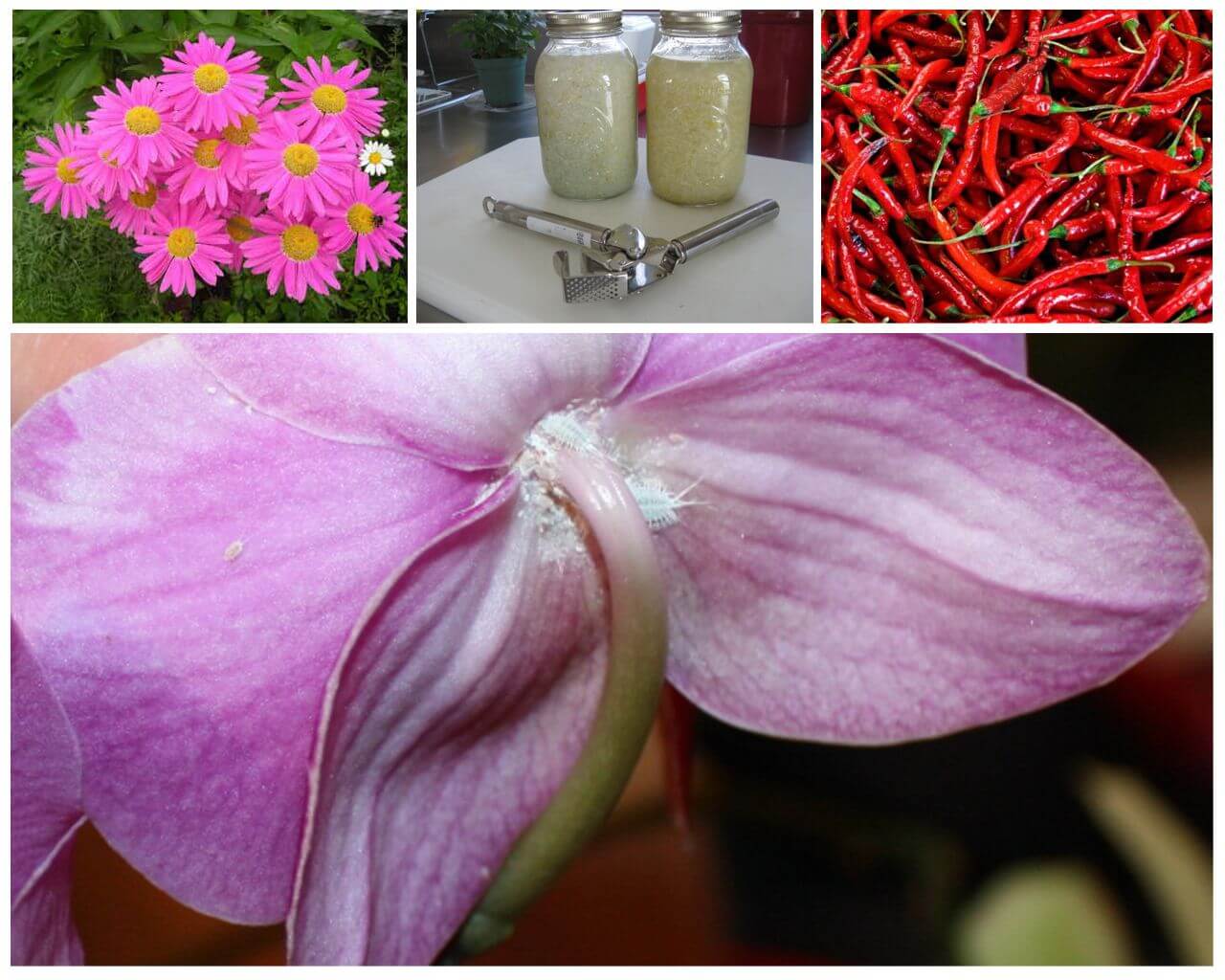 - Піретрум (настій далматской ромашки). 200 р дрібно подрібненої рослини заливають 2 л окропу, після чого настоюють протягом 12 годин. Отриманий настій фільтрують, розводять водою у співвідношенні 1:3 і використовують для обробки заражених орхідей.