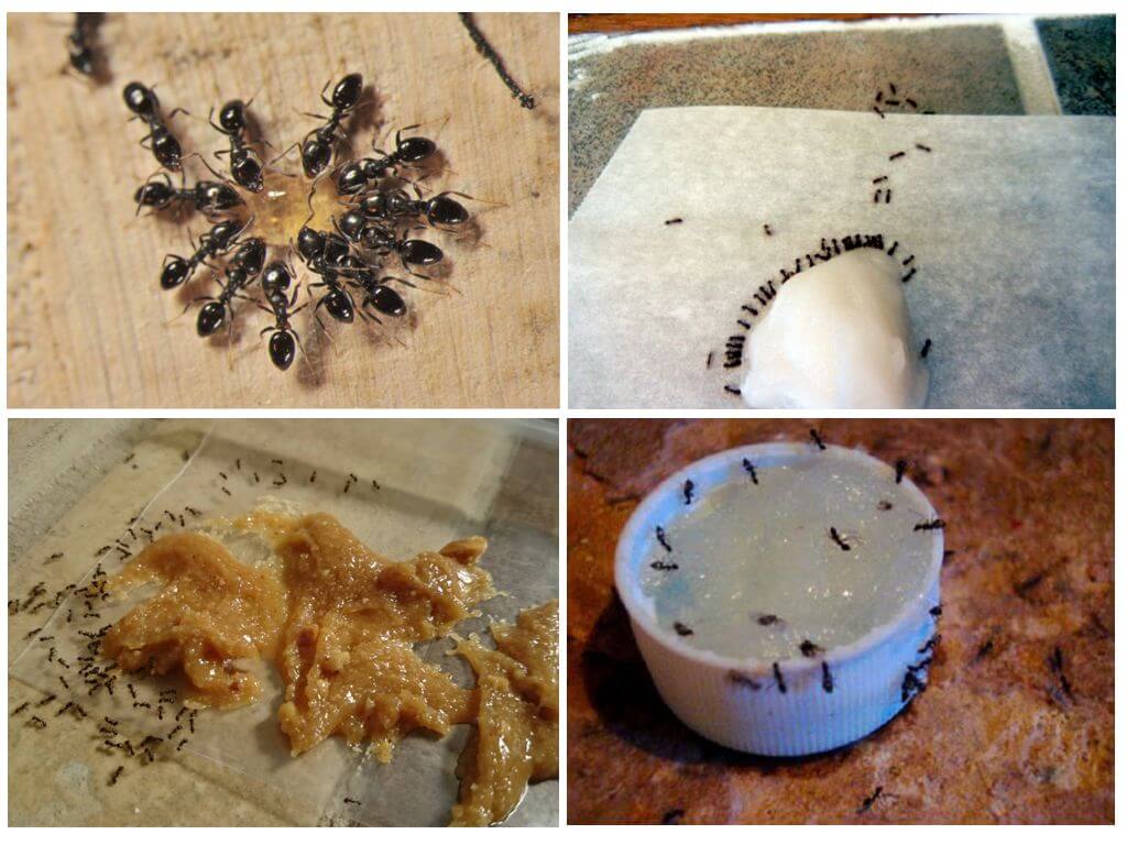 - мед розводиться з водою і наноситься на посудні губки, які розкладають по мурашиних доріжках: після того, як вони обсіють «солодку губку», її кидають в окріп;