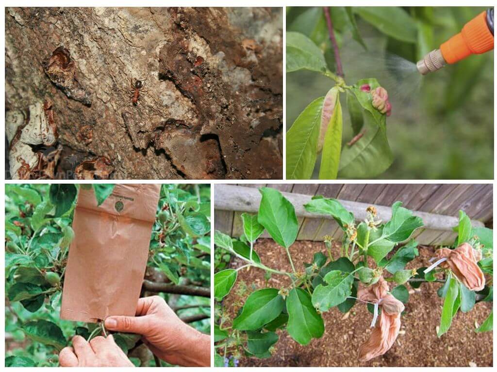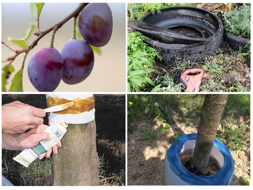 Стовбур сливи, яблуні чи іншого фруктового дерева обмазують над землею дьогтем. Для цих же цілей можна використовувати торф.