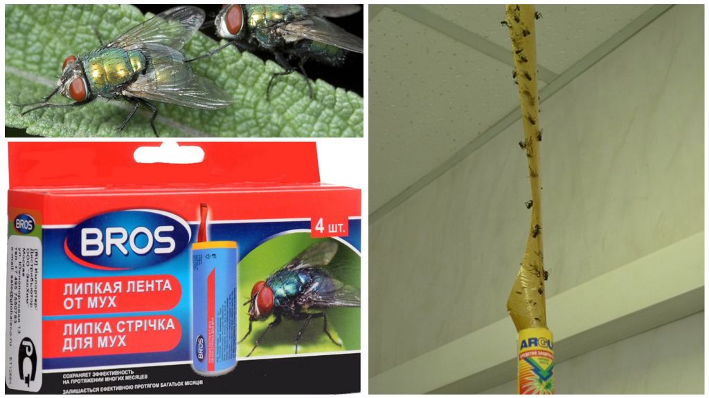 Допомагають від мух на стадії імаго. Найпростіший варіант – клейкі стрічки. Підвішуються під стелею в місцях скупчення комах. Діють, поки не заповниться вся поверхня. Безпечне, просте в застосуванні, але не дуже ефективний засіб. Липка стрічка підходить при невеликій чисельності комах.