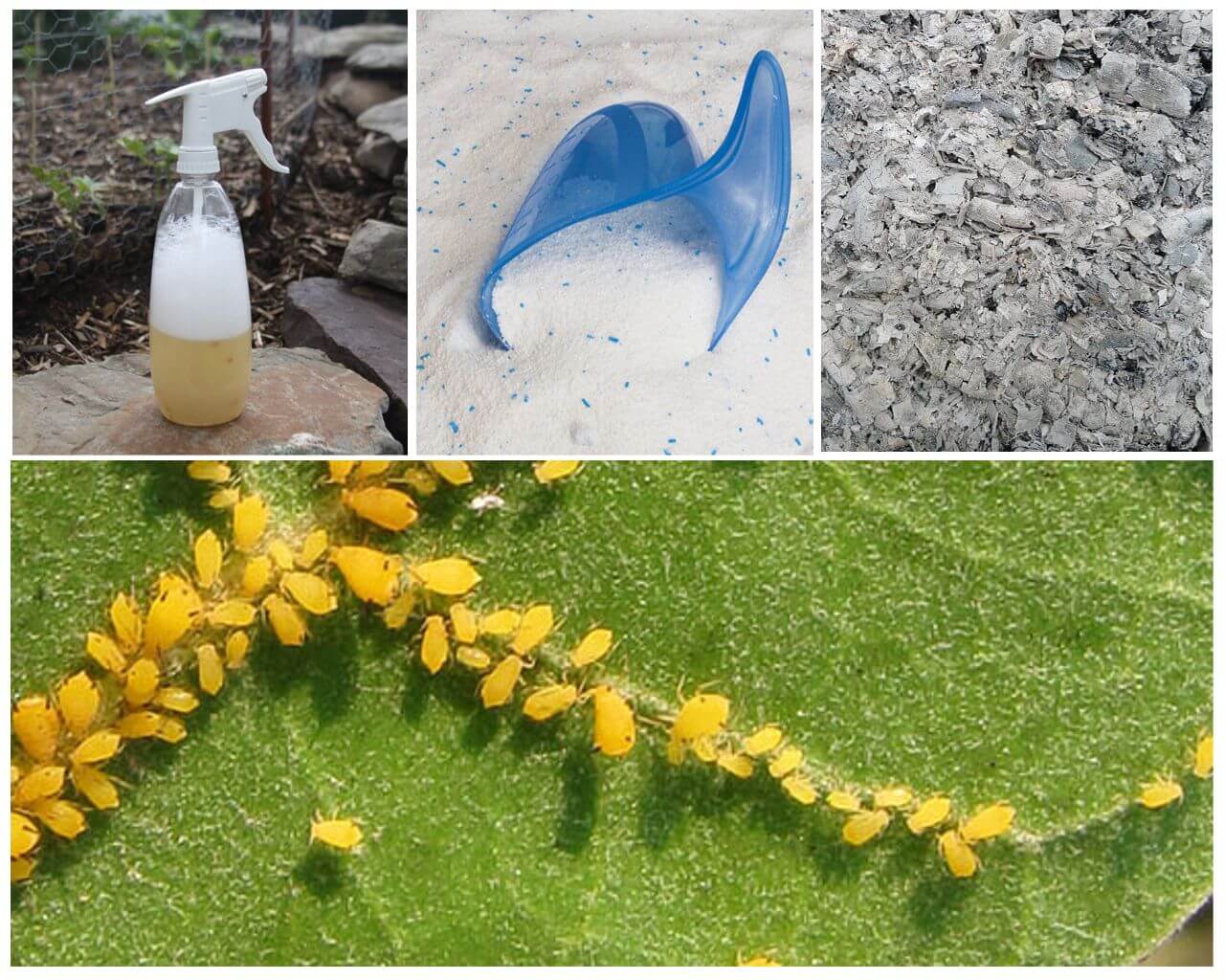 Позбутися від попелиці на рослинах допомагає пральний порошок. Однак цей засіб здатне викликати опіки на листках. Тому враховуючи різну концентрацію порошків, рекомендується починати обробку з 1 % розчину. Причому для проби його слід застосовувати лише на одній рослині. При відсутності негативних наслідків протягом доби розчином моно обробляти інші насадження.