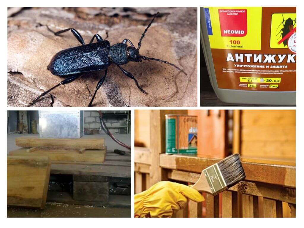 Не доведеться позбавлятися від жуків вусанів, якщо своєчасно проводити профілактичну обробку дерев’яного будинку. Для цього використовують захисні засоби – антисептики комплексного значення типу Пинотекс, Фенікс або Сенеж. В дерев’яних елементах будинку не будуть жити комахи, якщо їх обштукатурити.