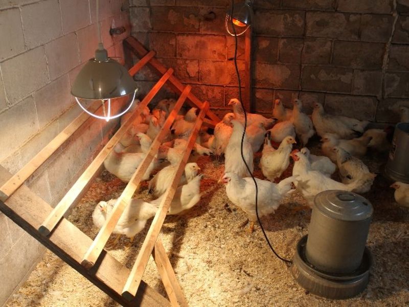 Інфрачервоні лампи, порівняно з батареєю, споживають значно менше електроенергії. З їх допомогою тепло рівномірно розподіляється по площі курника. Завдяки простоті в установці і використанні лампи прослужать довгий час.