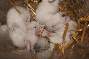 - Відсутність у кролиці материнського інстинкту. Особливість цієї ситуації полягає в тому, що самка відмовляється годувати і обігрівати дитинчат. В цьому випадку потрібно підкласти кроленят до іншої годуючої матері. Але перед цим треба обтерти потомство пухом з її клітини, інакше нова мама може відкинути знову прибуло потомство. Самка, не має материнського інстинкту, відбраковуються