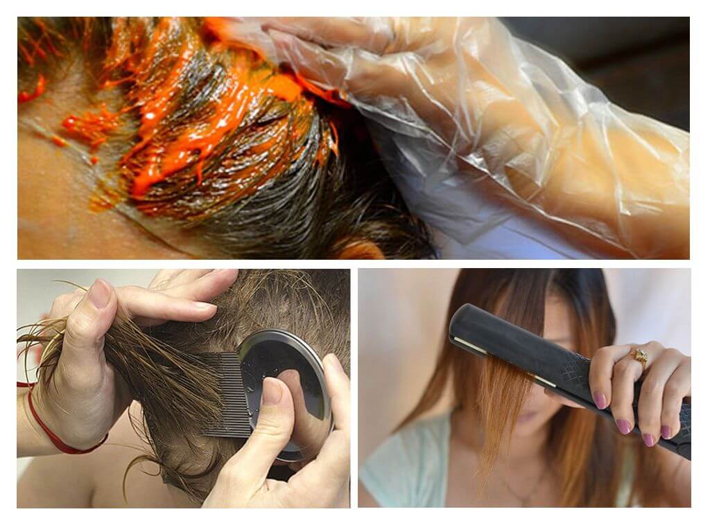 Фарба для волосся здатна знищувати дорослих вошей і їх личинок. Але популярні бренди не використовують при виготовленні свого продукту дуже шкідливих речовин. Тому фарбу варто брати дешеву, що містить аміак. Речовина руйнує хітинову оболонку комах.