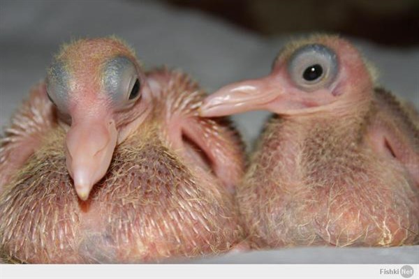 Пташеня називається – голубенок, і народжуються вони, як інші представники класу пернатих. Проходять стадію народження, шляхом вилуплення з яєць. Як виглядає пташеня? У новонародженого немає оперення, і відсутній навіть пух на шкірному покриві. Це особливість не зустрічається у інших видів птахів. Крім цього, пташенята у голубів народжуються абсолютно сліпими і вижити без батьківського піклування неможливо.