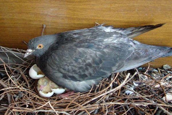 Де пташенята міських голубів? Більшість голубів, які живуть на вулиці, звикли до людської присутності, але не довіряють самого головного – дитинчат. Маленькі голуби абсолютно безпорадні, без оперення, які потребують тепла. Батьки не залишають їх на довгий час в перші місяці. Голубина пара по черзі зігріває голубят.