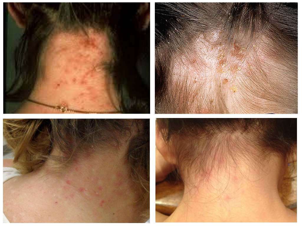 - у випадках тривалого зараження поява неприємного запаху, гнійних мас, склеювання волосся, кірок, сухих гнид.