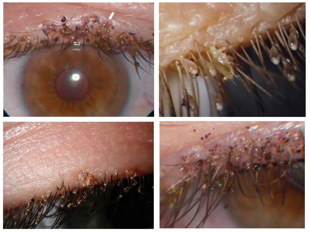 У дітей фтириаз зазвичай проявляється на віях або бровах.