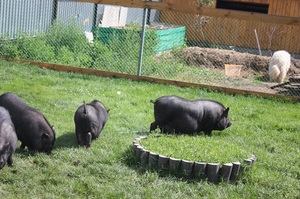 Для зміцнення кістяка, імунітету та отримання вітаміну D свиням потрібні прогулянки. Для поросят і вагітних свиноматок такі вигули просто необхідні. Якщо поблизу немає підходящої галявини, то можна організувати біля сараю спеціальний дворик для вигулу тварин, який являє собою звичайну майданчик, обгороджений парканом. Крім того, в літній період свиней можна там і годувати.