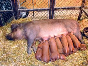 У першому посліді молода свинка іноді приносить до десяти поросят.