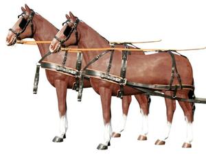 У пари можуть відбуватися і такі запрягання коней, як змішані і дышловые. Якщо особина треба запрягти сільськогосподарське пристрій, то застосовується постромочная збруя. З-за свого високого тягового опору вона усуває можливість накату знаряддя і випадкового поранення коні.