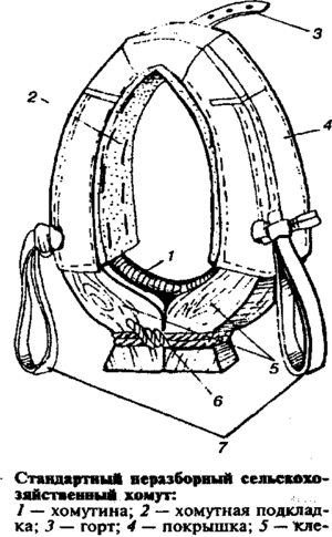 У такій конструкції, крім дуги, особливо потрібним елементом називають хомут. Він може застосовуватися і в бездуговой, і в дишловий упряжці, тому на його будова потрібно звернути більшу увагу.