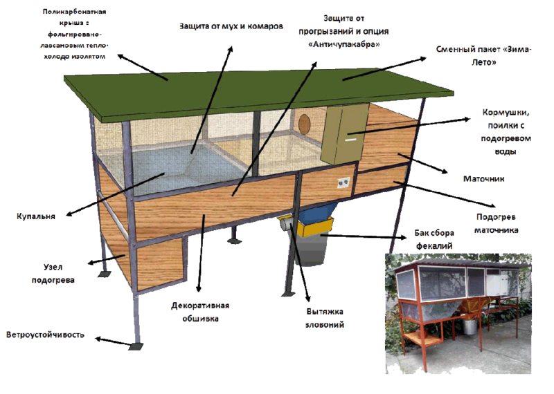 - Для того щоб продовжити термін експлуатації всіх дерев’яних елементів клітини їх потрібно зовні прикрити шматками шиферу або металу.