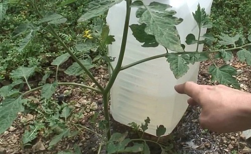 На фото крапельний полив з пластикової пляшки