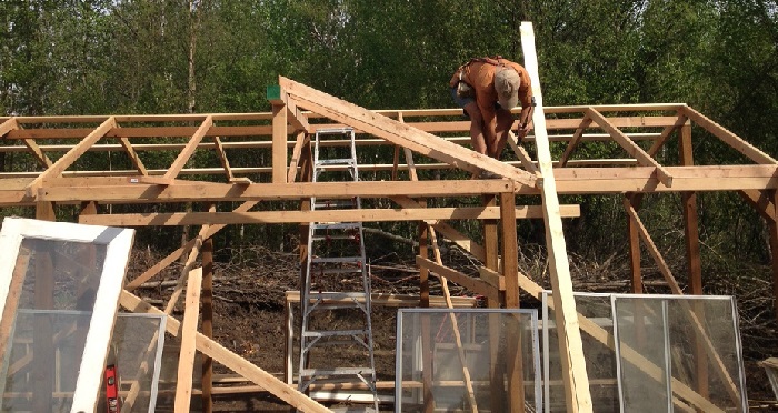 По кутах майбутньої конструкції встановлюються спеціальні вертикальні стійки, які з’єднуються зверху. Зробивши каркас безпосередньо для покрівлі, не варто забувати про створення ухилу. Після завершення монтажу, потрібно приступити до закріплення старих віконних рам. В цілях безпеки було б розсудливо демонтувати скла і вставити їх назад по закінченні робіт.