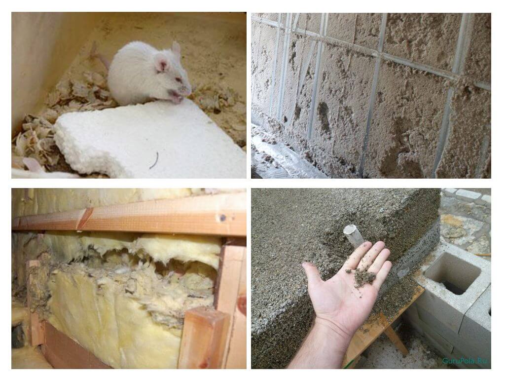 В неорганічних утеплювачі гризуни не заводяться. Але в мінеральній ваті їм легко зробити ходи. Миші в скловаті теж здатні прогризти лаз до джерела їжі.