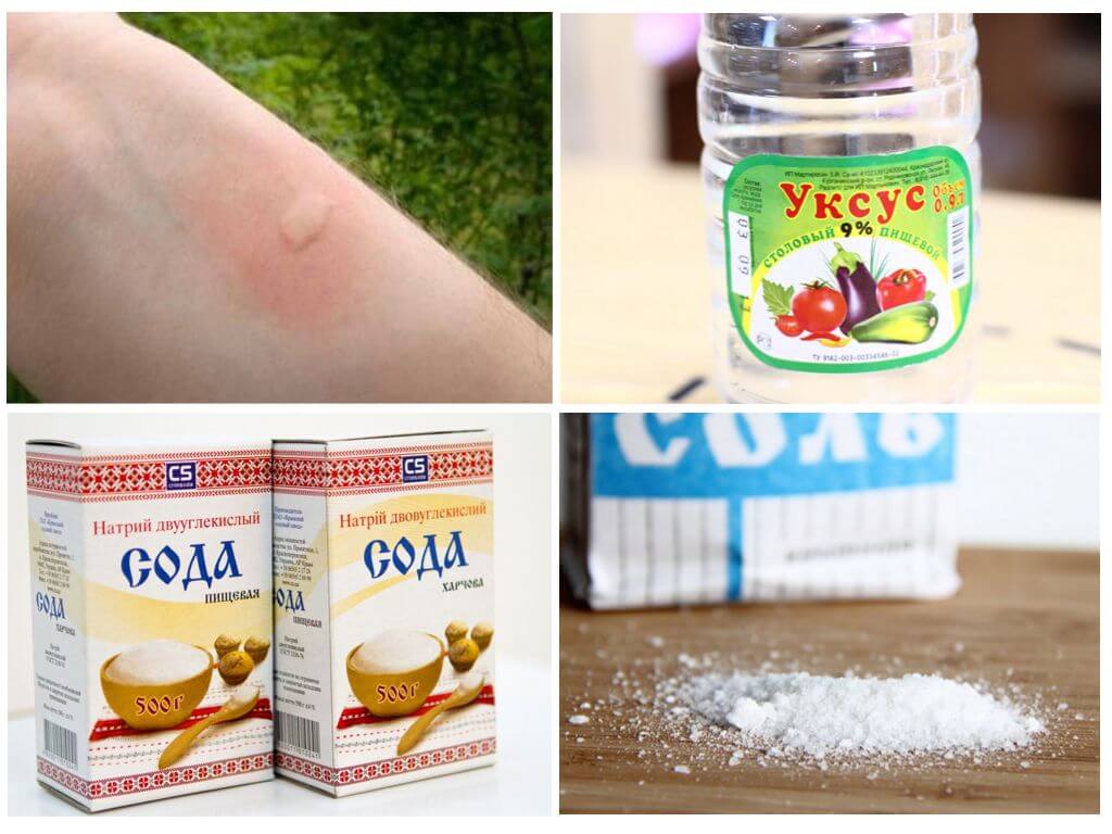 Зменшити свербіж хворобливих пухирів тим, хто вчасно не застосував рецепт з оцтом і шампунем і все-таки був атакований кровопивцями, допоможе розчин соди. Його готують з розрахунку на 200 г теплої води 1 ст. л. соди. Ретельно перемішану суміш використовують для примочок, залишаючи змочену серветку на тілі протягом 10-15 хвилин.