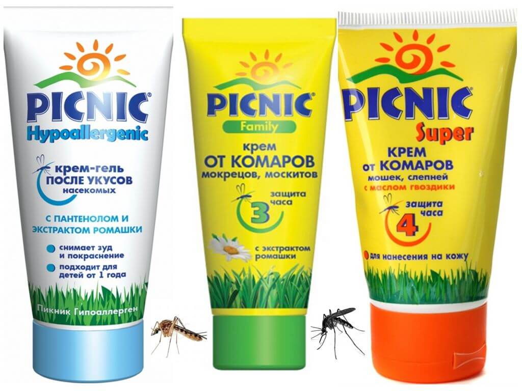 Продукція Пікнік (Picnic) займає лідируюче місце по продажах серед аналогічних засобів в теплу пору сезону. Товар приваблює швидким дією, різноманітністю, універсальністю і ціною. Виробляється в Росії. Кошти Пікнік від комарів – надійний захист від комах у приміщенні та на свіжому повітрі.