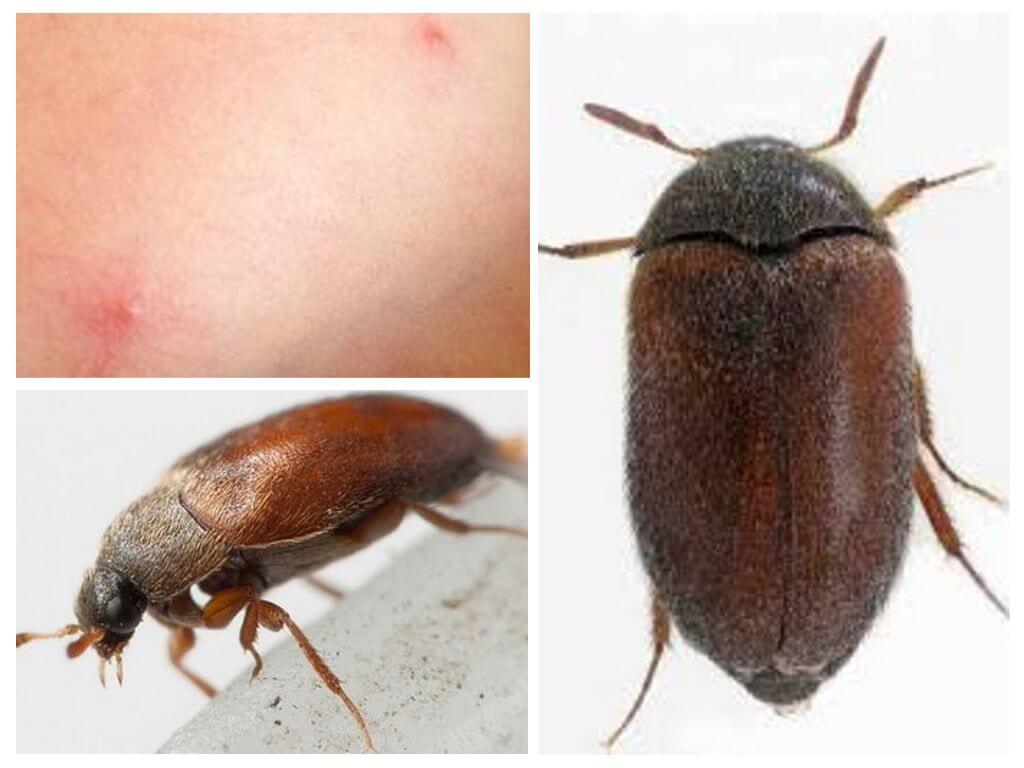 - Килимовий кожеед –мініатюрний коричневий жучок, який з-за маленького розміру може харчуватися дрібним органічним сміттям – шерстю домашніх тварин, лусочками епідермісу, крихтами продуктів.