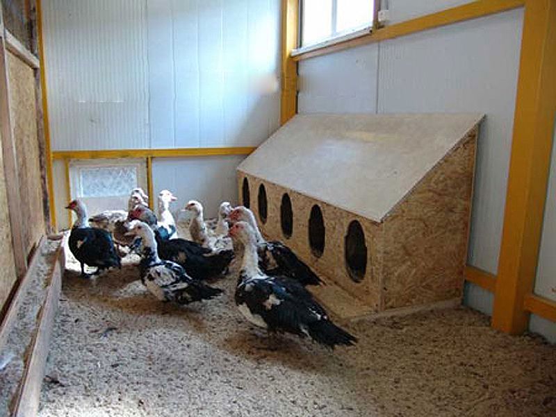 Килимок потрібно регулярно міняти, а в якості нього застосовують тирсу або солому. Не більше три особини має припадати на 1 квадратному метрі в кімнатці. З приходом весни качки постійно знаходяться на вигулі. Яйця вони дають рано вранці або ближче до ночі. Тому на вигул їх можна випускати тільки після 9-ти годин.