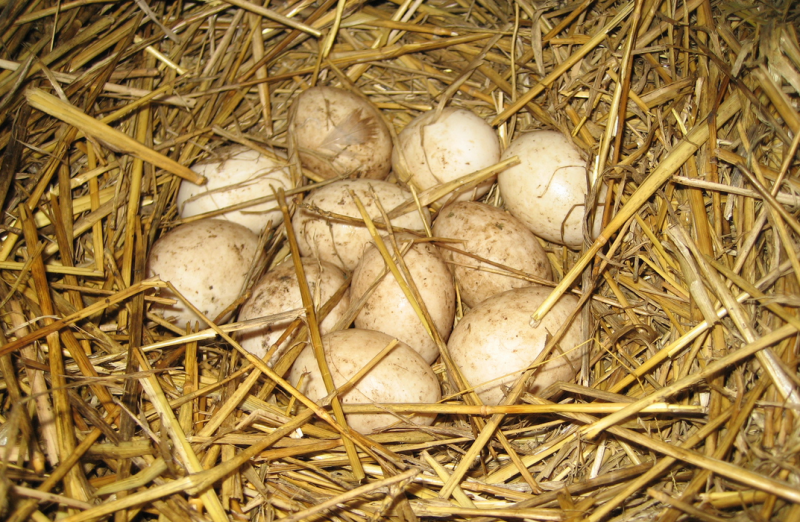 Птахи чудово сідають на яйця, а після надають догляд каченята. До настання холодів у фермера вже буде ціле стадо. А в холодний період потрібно залишити одну особина чоловічої статі і пару качок, щоб з настанням тепла були нові малюки. Ця схема застосовується багатьма фермерами.