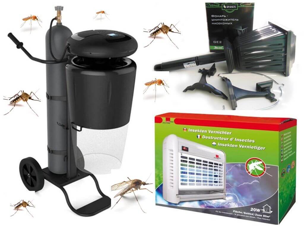 Бувають засоби від комарів на вулиці великого радіусу дії (до 5000 кв. м.), є й такі, що охоплюють території поменше. Нижче представлений ряд найбільш популярних знищувачів комарів.